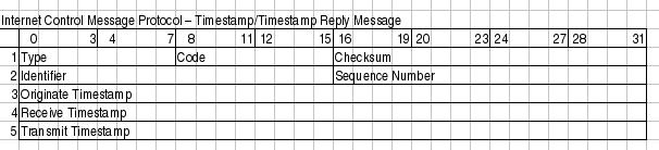 the reply is type 14. The timestamp packets contains 3 32-bit timestamps