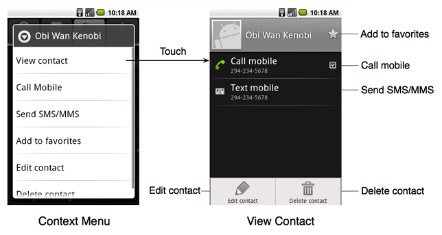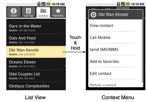 In the above example, if the user performs touch & hold on the contact