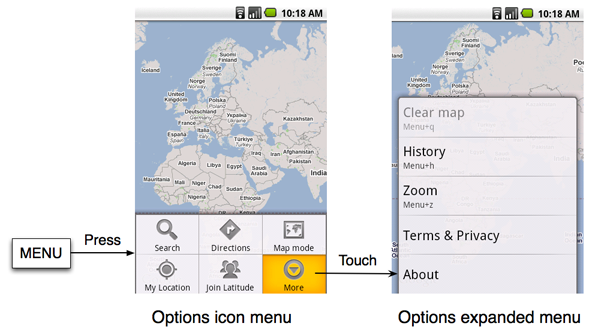 The Android system provides two types of menus you can use to provide