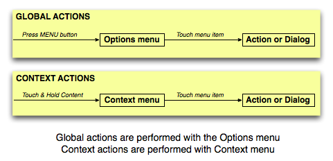 for going to the next screen and performing the operation there. Context menus