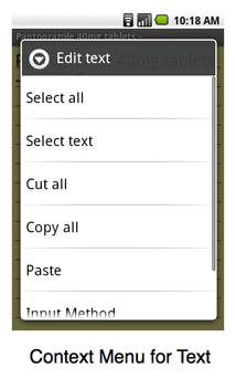 selected item. It is typically invoked by a user's touch & hold