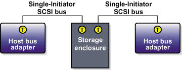 shows a configuration that uses two single-initiator SCSI