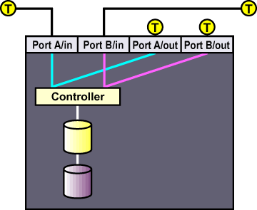 A-5 shows the termination in a dual-controller RAID array