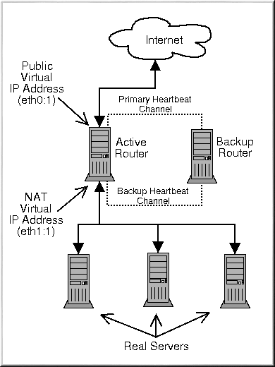 illustrates an LVS cluster utilizing NAT routing to move requests