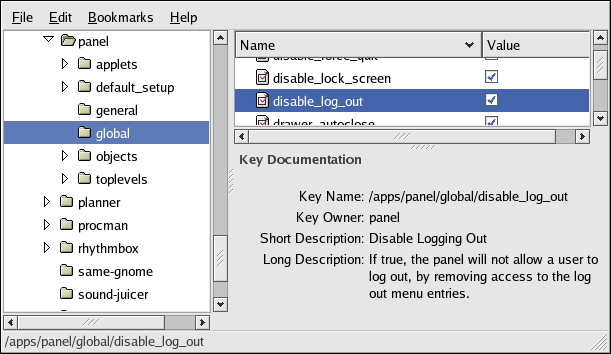 The GNOME desktop can be configured to restrict user access to a