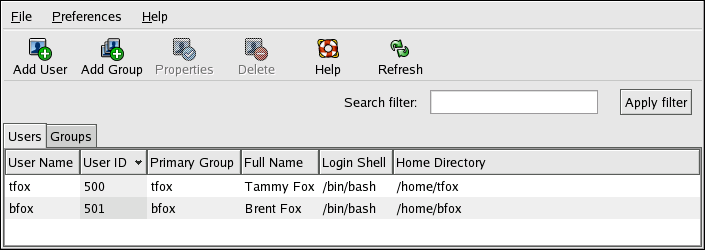 Or, type the command system-config-users