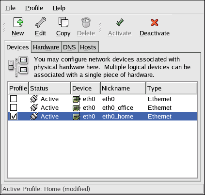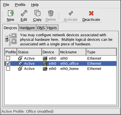 logical device if the profile is selected, uncheck the eth0 device and check the eth0_office device.