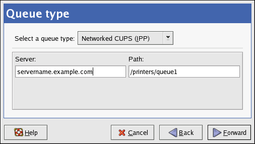 a networked IPP printer by clicking the New button in the main Printer Configuration Tool window to display the