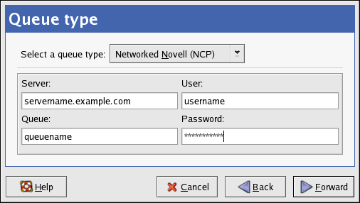 To add a Novell NetWare (NCP) printer, click the New button in the main Printer Configuration Tool window. The window