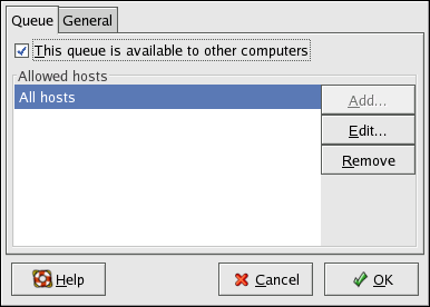 After selecting to share the queue, by default, all hosts are allowed to print to the shared