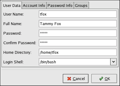 information configured when you added the user. Use this tab to