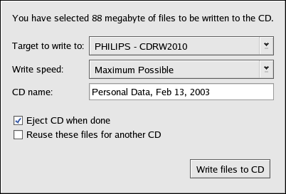 automatically starts. You can also open CD/DVD Creator from a Nautilus window by selecting => .