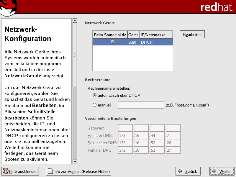 Wenn Sie die Netzwerkkonfiguration nach vollendeter Installation �ndern m�chten, verwenden Sie hierzu das Network Administration Tool.