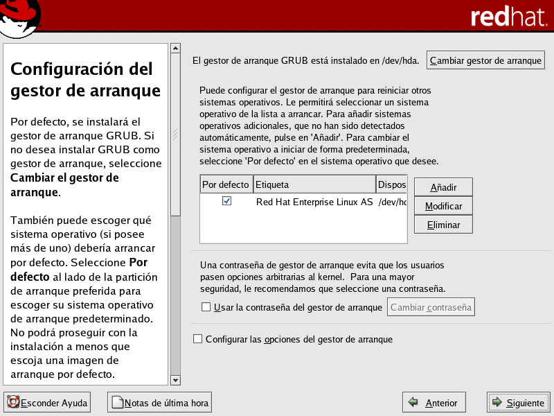 Linuxtopia - Red Hat Enterprise Linux Manual de instalacion para x86, Itanium, AMD64 e Intel Extended Memory 64 Technology (Intel EM64T) - Configuraci�n del gestor de arranque x86, AMD64 e Intel EM64T