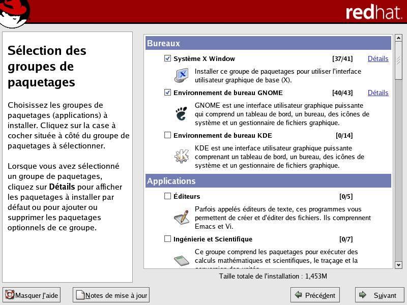 Linuxtopia - RedHat Enterprise Linux Guide d'installation pour les architectures x86, Itanium et AMD64 - S�lection des groupes de paquetages