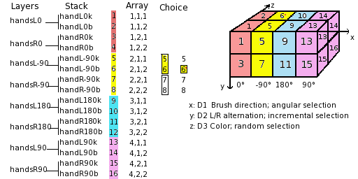 brush is represented in a 3D array "myarray(4,2,2)":