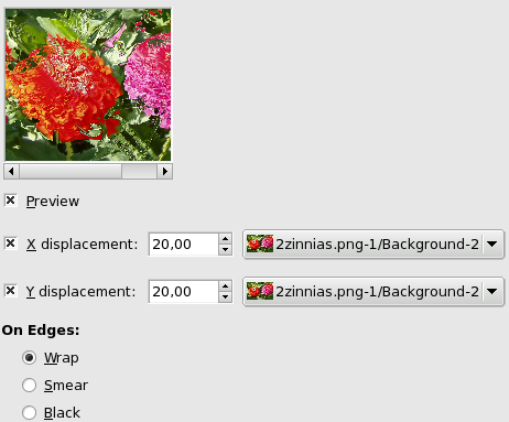 This filter uses a 'displace-map' to displace corresponding pixels of