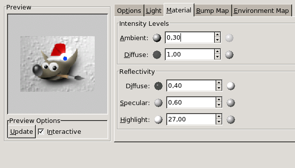 “Bumpmap” options of the Lighting filter
