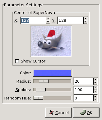 This filter creates a big star reminding a super-nova. It works with RGB and GRAY images. Light