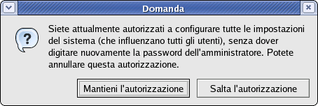 Si consiglia prima di allontanarsi da una console dove � attivo un timestamp di PAM, di eliminare il file di timestamp. Per fare ci� all'interno di un ambiente grafico, fate clic sull'icona di autenticazione sul pannello. Quando appare una finestra di dialogo, fate clic sul pulsante Dimentica l'autorizzazione.