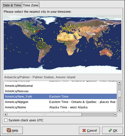 using the interactive map or by choosing the desired time zone from