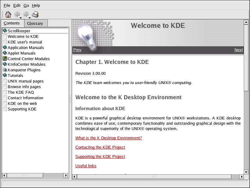 You can access a comprehensive set of documentation about KDE