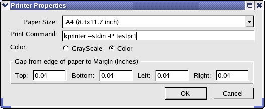 kprinter is the print dialog of KDEPrint which allows you to select the destination printer and change printer options. Among the destination printers, there are a few virtual printers allowing you to print to email, fax or pdf.