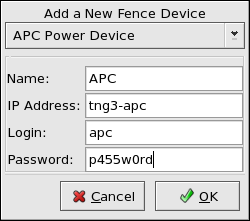Table 3-4. Configuring an APC Fence Device