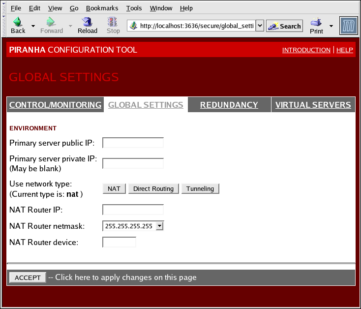 have to correlate to the real private IP address assigned in Section 9.1.1 Configuring Network Interfaces for a NAT LVS Cluster. You may leave this field blank,