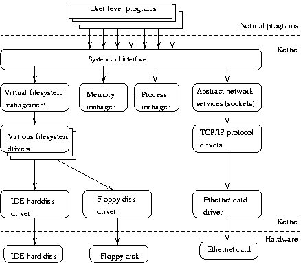 management, memory management, hardware device drivers, filesystem