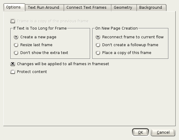 This is useful for title frames, headers and footer frames. Each page will have an automatic copy of this information
