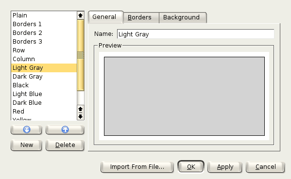 Select the framestyle you want to change by clicking on the name of the framestyle in the listbox on the left.