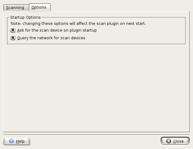 toggles the scanner selection dialog on and off. If there is a mark in this