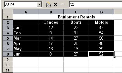 To demonstrate the process of making charts and graphs in Calc, we will use the small table of data below.