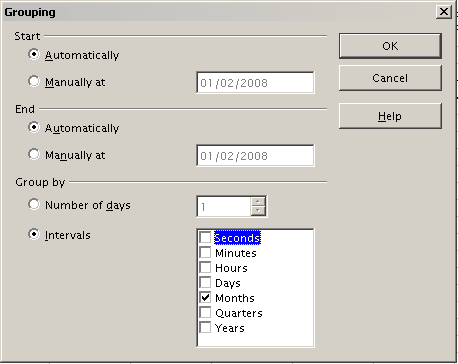 - To group the columns. select cell B4 or any other cell that contains a date. Then select Data > Group and Outline > Group and click OK. The result is now grouped for months.