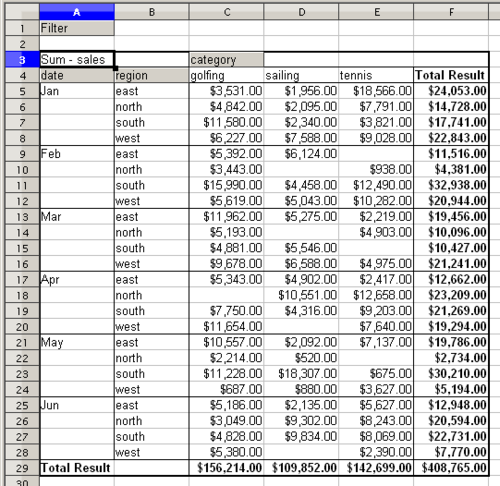 - Select the cell A3 (or any other single cell that is part of the DataPilot result).