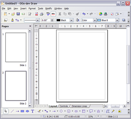 You can split drawings in Draw over several pages. Multipage drawings are used mainly for presentations. The Pages pane, on the left side of the Draw window, gives an overview of the pages that you create. If the Pages pane is not visible on your setup,you can enable it from the View menu (View > Page Pane).