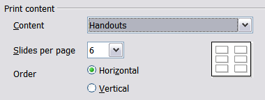 - In the Print content section of the Print dialog box, make sure that Handouts is selected.