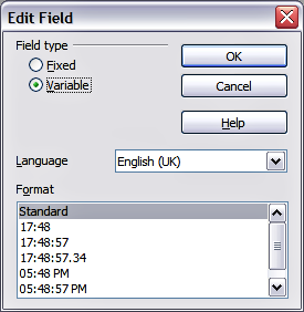 | A similar list of format choices can be accessed by selecting the field and right‑clicking.