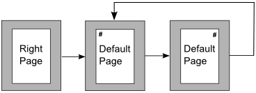 The figure below illustrates the transitions from the Right Page to Default page styles, with the change of header between left and right pages shown by the # symbol.
