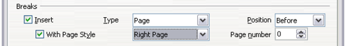 - On the Text Flow page of the Paragraph Style dialog box, in the Breaks section, select Insert, With Page Style, and Right Page. Click OK to save your changes.