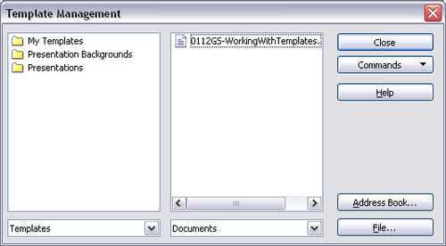 - From the main menu, choose File > Templates > Organize. The Template Management dialog box opens.
