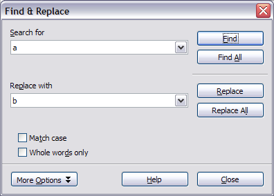 | If you click Find All, Writer selects all instances of the search text in the document. Similarly, if you click Replace All, Writer replaces all matches.
