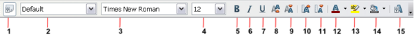 You can apply many formats to characters using the buttons on the Formatting toolbar. The Formatting toolbar is shown below as a floating toolbar, customized to show only the icons for character formatting.