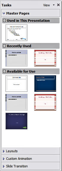 the Tasks Pane, be sure the Master Pages section is showing (Figure 19).