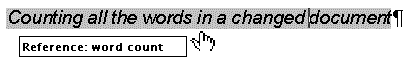 In the Name field in the lower right hand column, type the name of the reference you set in the subdocument you are referring to. In our example, the reference is in Chapter 3, and its name is word count.