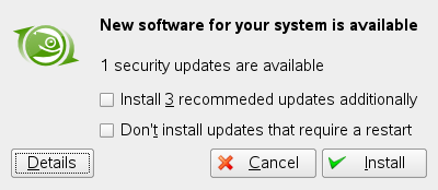 the openSUSE Updater icon indicates the availability of updates, click on the icon