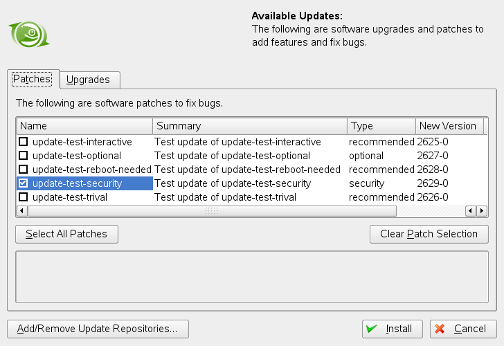 The openSUSE Updater applet informs you about the availability of patches and lets