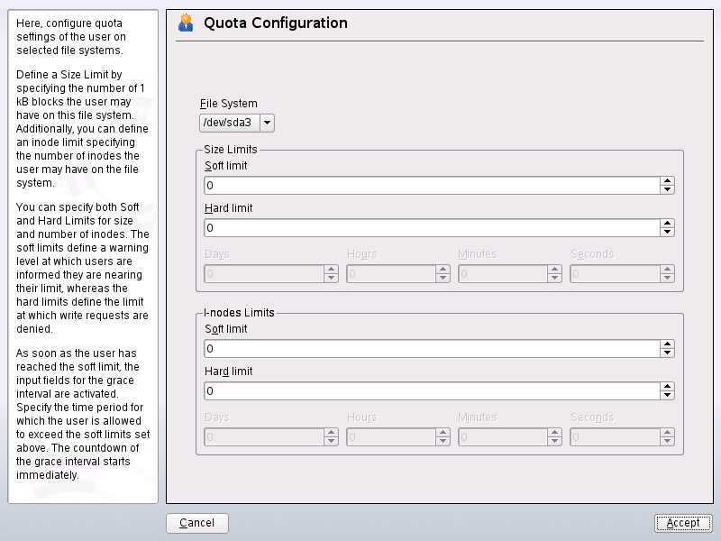 limit specified for size or inodes. Otherwise the time-related input fields are not activated.