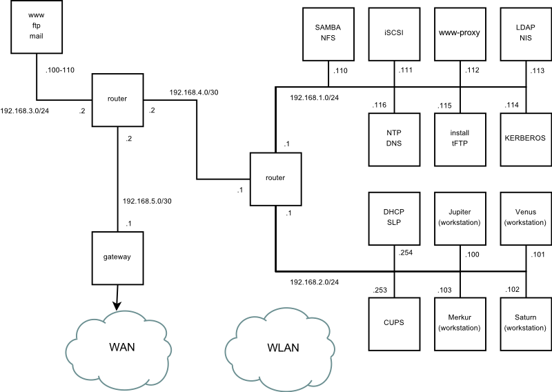 This example network is used across all network-related chapters of the openSUSE® documentation.